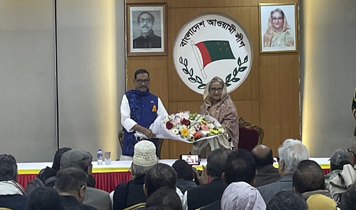 পঞ্চমবারের মতো প্রধানমন্ত্রী হওয়ার প্রথমবারের মতো দলীয় কার্যালয়ে আসেন শেখ হাসিনা। অনুষ্ঠানের শুরুতে দলের সাধারণ সম্পাদক ওবায়দুল কাদের দলীয় প্রধানকে ফুলের শুভেচ্ছা জানান।