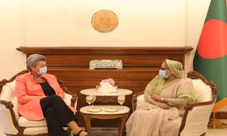 প্রধানমন্ত্রীর সাথে রবিবার ঢাকা সেনানিবাসে তার কার্যালয়ে সফরত কমান্ডার ইউএস প্যাসিফিক কমান্ড এডমিরাল হ্যারিসের সাক্ষাৎ