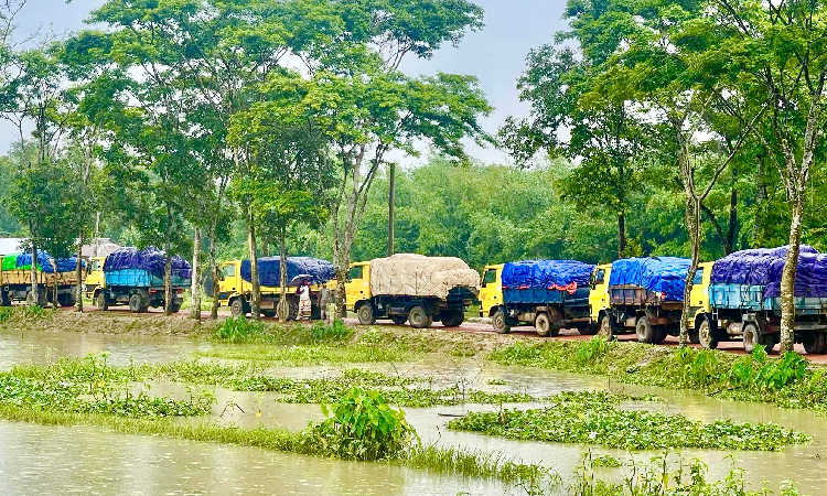ভারী বর্ষণ ও উজানের পাহাড়ি ঢলে তিস্তা ও ধরলা নদীর পানি বৃদ্ধি পেয়েছে। ফলে তিস্তা ও ধরলা নদীর তীরবর্তী লালমনিরহাট, নীলফামারী ও কুড়িগ্রাম জেলায় হাজার হাজার পরিবার পানি বন্দি হয়ে পড়েছে। দেখা দিয়েছে বিশুদ্ধ পানি ও খাবার সংকট। তিস্তা পানি বৃদ্ধিতে লালমনিরহাটের পাটগ্রামের দহগ্রাম, হাতীবান্ধার গড্ডিমারী, দোয়ানী, সানিয়াজান ইউনিয়নের নিজ শেখ সুন্দর, সিঙ্গামারি ইউনিয়নের ধুবনী, সিন্দুর্না, পাটিকাপাড়া, ডাউয়াবাড়ী, কালীগঞ্জ উপজেলার ভোটমারী, শৈইলমারী, নোহালী, চর বৈরাতি, আদিতমারী উপজেলার মহিষখোচা, পলাশী ও সদর উপজেলার খুনিয়াগাছ, কালমাটি রাজপুর, গোকুন্ডা ইউনিয়নের তিস্তা নদীর তীরবর্তী নিম্নাঞ্চলে পানি প্রবেশ করছে।