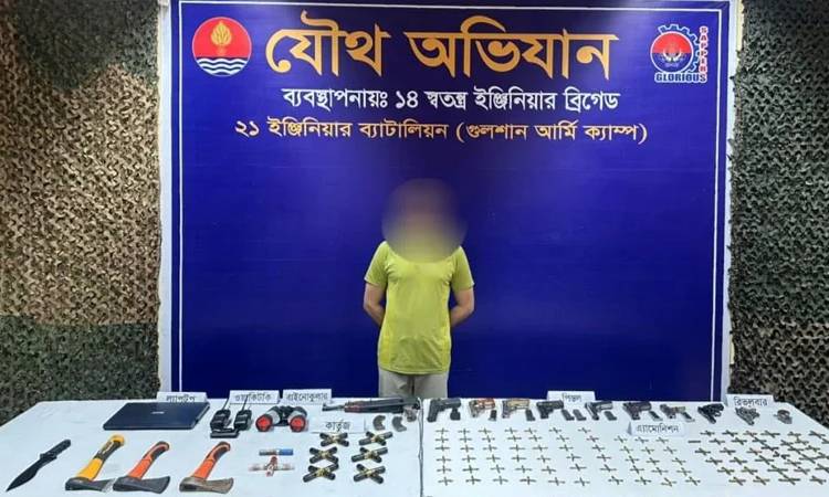 এদিকে বৃহস্পতিবার ভোরে শরীয়তপুর সদর উপজেলার আংগারিয়াতে সেনাবাহিনীর যৌথ অভিযানে অস্ত্র ও গোলাবারুদ উদ্ধার করা হয়। অভিযানে ১টি শটগান, ২টি রাইফেল, ১২ রাউন্ড পিস্তলের গোলাবারুদ, ৭১ রাউন্ড শটগানের গোলাবারুদ, ৫৭ রাউন্ড পয়েন্ট ২২ বোরের গোলাবারুদ, ৩টি ম্যাগাজিন এবং দেশীয় অস্ত্রসহ একজনকে গ্রেপ্তার করা হয়।