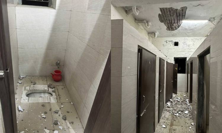 খসে পড়লো ঢাকা মেডিকেল কলেজ হাসপাতালের ফজলে রাব্বি হলের ওয়াশরুমের ছাদ।