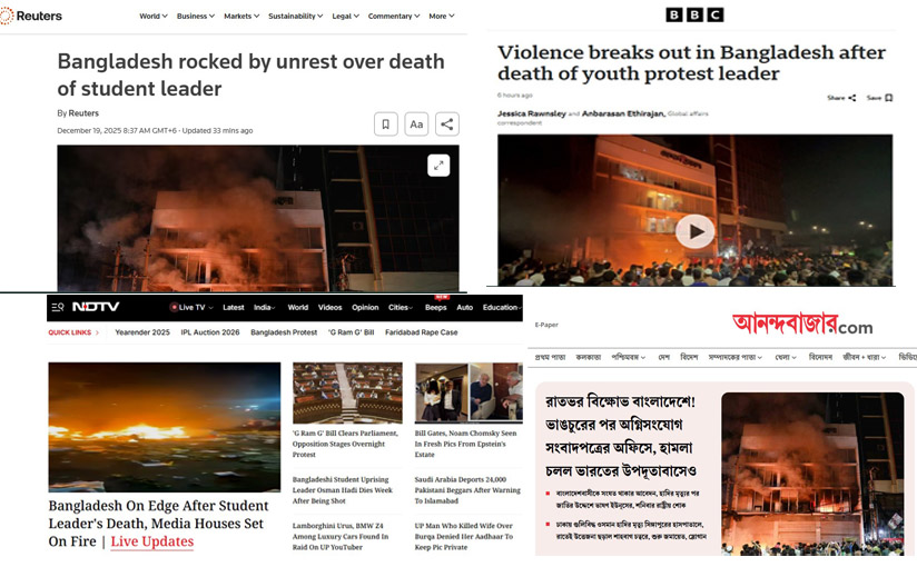 বৃহস্পতিবার (১৮ ডিসেম্বর) রাতে বিবিসি, এনডিটিভি, রয়টার্স ও আনন্দ বাজারে প্রকাশিত হয় বাংলাদেশের প্রথম সারির বাংলা দৈনিক প্রথম আলো ও ইংরেজি দৈনিক ডেইলি স্টারের প্রধান কার্যালয়ে অগ্নিসংযোগর খবর।