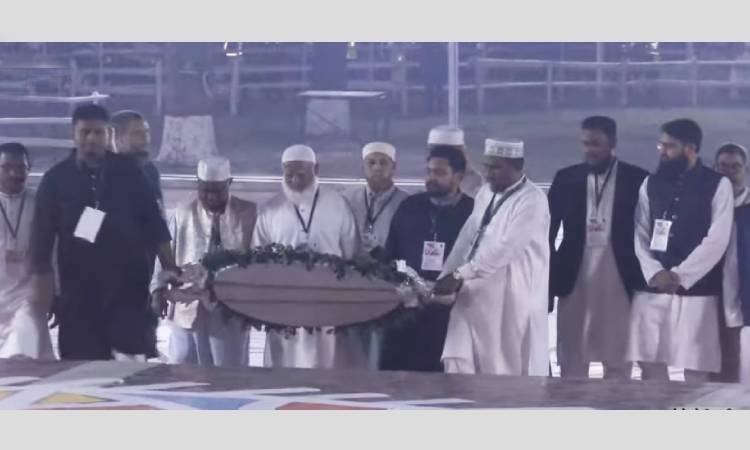 শনিবার (২১ ফেব্রুয়ারি) একুশের ১২টা ১৯ মিনিটে কেন্দ্রীয় শহিদ মিনারে পুষ্পস্তবক অর্পণের মাধ্যমে মহান ভাষা আন্দোলনের শহিদদের প্রতি শ্রদ্ধা জানান তারা। এ সময় শহিদদের স্মরণে দাঁড়িয়ে নীরবতা পালনের পাশাপাশি দোয়া মোনাজাত করেন তারা।