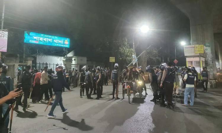 এর আগে বিকেল সাড়ে ৪টার দিকে ইনকিলাব মঞ্চের নেতাকর্মীরা শাহবাগের ইন্টারকন্টিনেন্টাল হোটেলসংলগ্ন সড়ক থেকে প্রধান উপদেষ্টার বাসভবনের দিকে অগ্রসর হওয়ার চেষ্টা করলে পুলিশ তাদের বাধা দেয়। একপর্যায়ে পরিস্থিতি উত্তপ্ত হয়ে উঠলে পুলিশ আন্দোলনকারীদের ছত্রভঙ্গ করতে লাঠিচার্জ করে। পাশাপাশি জলকামান ব্যবহার করা হয়। পরিস্থিতি আরও জটিল হয়ে উঠলে পুলিশ টিয়ার গ্যাস নিক্ষেপ করে এবং কয়েক রাউন্ড সাউন্ড গ্রেনেড ছোড়ে। আন্দোলনকারীদের দাবি, এ সময় পুলিশ ছররা গুলিও নিক্ষেপ করে।