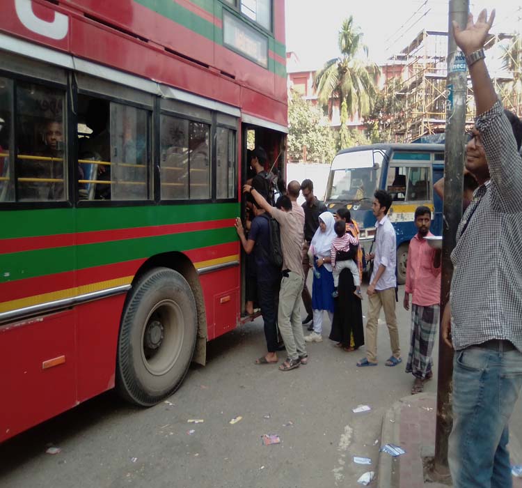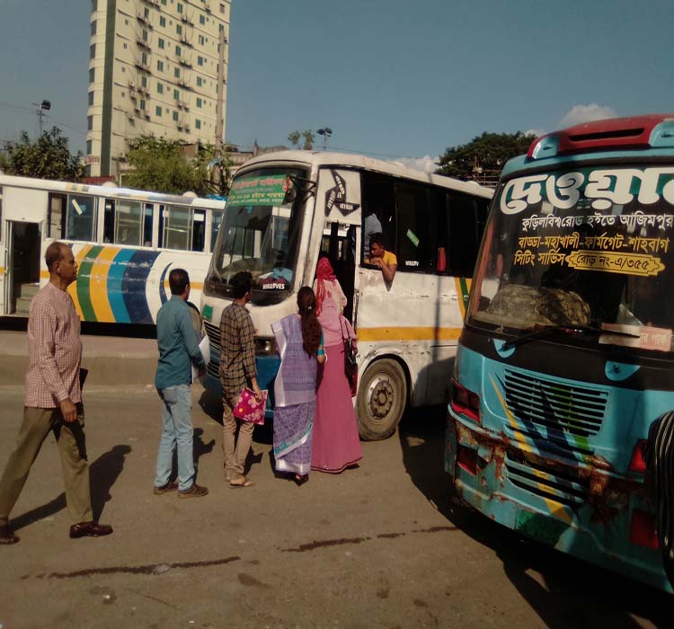 সরেজমিন ফার্মগেট এলাকায় গিয়ে দেখা গেছে, বাসযোগে সকালবেলা অফিস যাওয়া একভাবে খুবই দুর্সাধ্য। আর মেয়েদের জন্যে রীতিমত ভয়ঙ্কক। হয়রানির শিকার হচ্ছে শিশুরাও। ঠিক এমনটাই দেখা যায় বিকেলবেলা অফিস সময় শেষে হওয়ার পর। বাসের অপেক্ষায় ঘন্টার পর ঘন্টার দাঁড়িয়ে থাকতে হয় কর্মজীবী মানুষদের। চলন্ত বাসে জীবনের ঝুঁকি নিয়ে কেউ লাফিয়ে উঠছে কেউবা কোনোরকম হ্যান্ডেল ধরে ঝুলতে ঝুলতে ঘরে ফিরছে। প্রতিদিন সকাল আটটা থেকে রাত ১১টা পর্যন্ত এ দৃশ্য ফার্মগেটে দেখা গেছে।