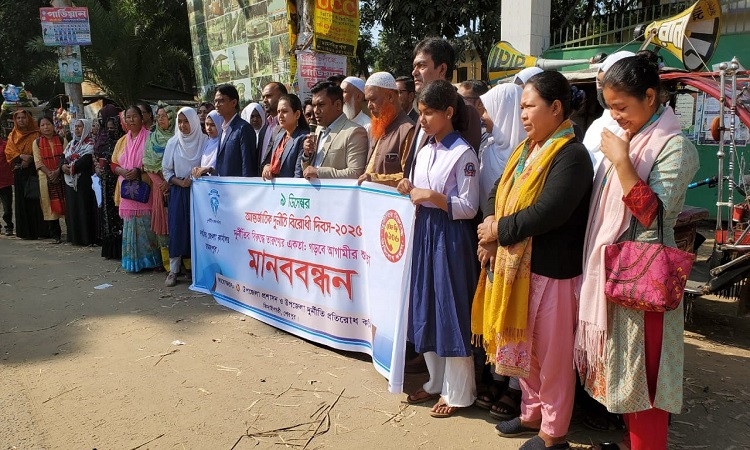 পাবনায় সারাদেশে অব্যাহতভাবে চুরি, ডাকাতি, চাঁদাবাজি, ছিনতাই, নারী ও শিশু ধর্ষণের প্রতিবাদ, ধর্ষকদের গ্রেফতার ও সর্বোচ্চ শাস্তির দাবিতে মানববন্ধন করেছে বৈষম্য বিরোধী ছাত্র আন্দোলন পাবনা।