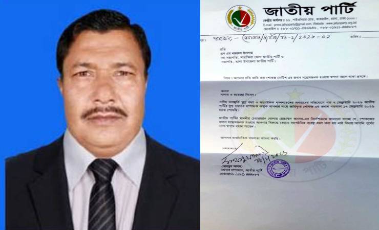 দলীয় সূত্রে জানা গেছে, গত ৭ ফেব্রুয়ারি তার বিরুদ্ধে দলীয় ভাবমূর্তি ক্ষুণ্ন ও সাংগঠনিক শৃঙ্খলাভঙ্গের অভিযোগে শোকজ নোটিশ জারি করা হয়েছিল। পরে ১৭ ফেব্রুয়ারি তিনি লিখিত জবাব দাখিল করেন। জবাব পর্যালোচনার পর জাতীয় পার্টির চেয়ারম্যান গোলাম মোহাম্মদ কাদের-এর নির্দেশক্রমে তা সন্তোষজনক বিবেচিত হয়। ফলে তার বিরুদ্ধে কোনো সাংগঠনিক ব্যবস্থা নেওয়া হয়নি এবং তিনি পূর্বের দায়িত্বেই বহাল থাকছেন।