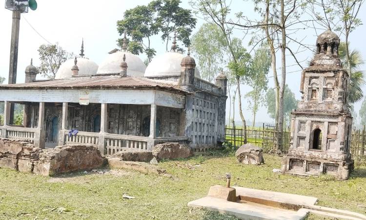 স্থানীয় ইউনিয়ন পরিষদ চেয়াম্যান নুর আমিন জানান, ইট ও চুন-সুরকি দিয়ে প্রাচীন এই মসজিদটি বানানো হয়। এখনো দেয়ালে হাতুড়ি দিয়ে আঘাত করলে আগুনের ফুলকির মতো বের হয়। মসজিদের বাম পাশে একটি প্রাচীন কবর রয়েছে। ধারণা করা হয়, যে ব্যক্তি মসজিদটি নির্মাণ করেছেন এটি তারই কবর। যার দেয়ালের প্রতিটি অংশে দেখা যায় প্রাচীন কারুকাজ। এ ছাড়া মসজিদটির সামনে আরও দুটি কবর রয়েছে।