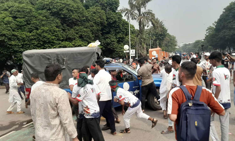 এ সময় পুলিশ ও এপিবিএন সদস্যরা বাধা দিলে সংঘর্ষ লেগে যায়। এক পর্যায়ে লাঠিচার্জ ও টিয়ারশেল নিক্ষেপ করে ছত্রভঙ্গ করে দেয় পুলিশ। লাঠিচার্জে বেশ কয়েকজন আহত হন। আহতদের মধ্যে জুলাইয়ে পা হারানো এবং হাত হারানো বেশ কয়েকজনকেও দেখা যায়।