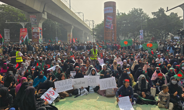 এরপর দুপুর সাড়ে ১২টায় তারা পুনরায় শাহবাগ মোড়ে শহীদ হাদি চত্বরে অবস্থান কর্মসূচি পালন করছেন। এসময় তারা ওসমান হাদি হত্যার বিচার চেয়ে নানা স্লোগান দেন।